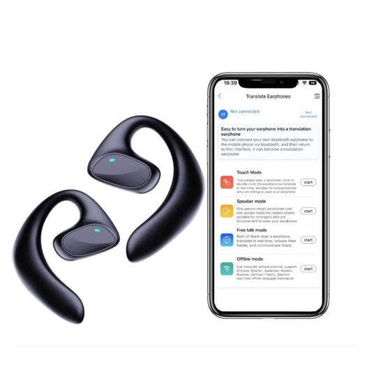 LingoWelle Eksklusiv | Intelligent Sofort Sprogoversætter - 144 Sprog - Realtids - Trådløse Bluetooth - Høretelefoner - AI - Støjreduktion